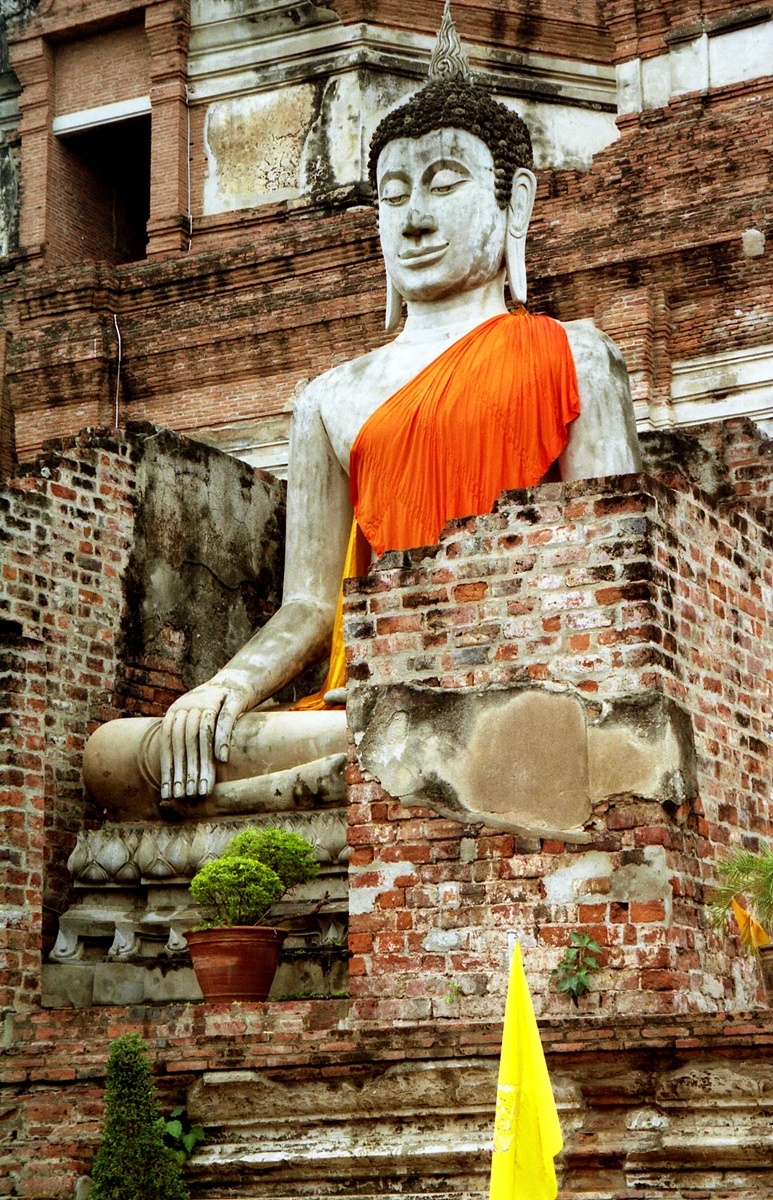 Ват Яй Чай Монгкол, лежащий на значительном расстоянии от центра, еще один прекрасно сохранившийся храм Аютайи. Желтая ткань, которой обтянуты ступы и статуи Будд, делают его очень фотогеничным. Такую ткань можно купить в храме и оставить ее в качестве подношения.