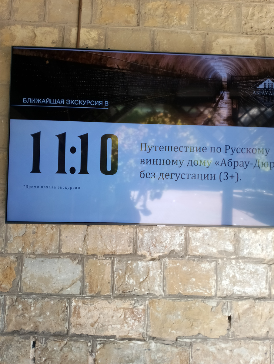 Хочется отметить, что профессионализм экскурсоводов стал довольно высоким. Может нам так везло, но и в Коктебеле, и в Массандре, и здесь, в Абрау, экскурсии очень интересные. Кроме того, применяются всякие нововведения в виде призраков и мультимедийных инсталяций.