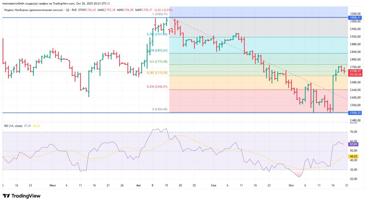 ❗️20 октября российский фондовый рынок вырос, индекс МосБиржи укрепился на 0,87% до уровня 2744,83