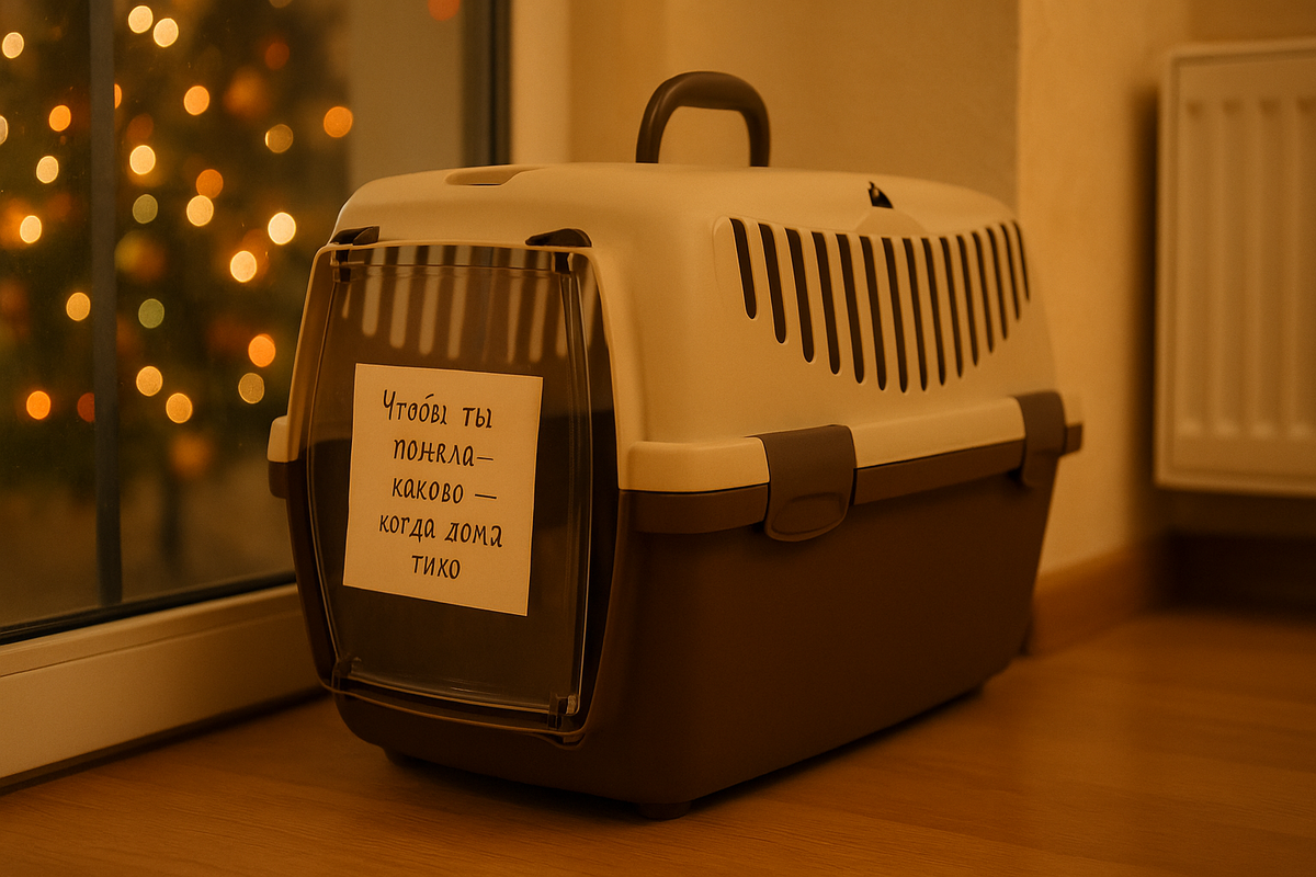 В новогодние истории люди обычно кладут мандарины, салют и счастливую музыку. А мне однажды досталась переноска. Пустая. И записка на дне, сложенная пополам, как сердце, которое передумало стучать.
