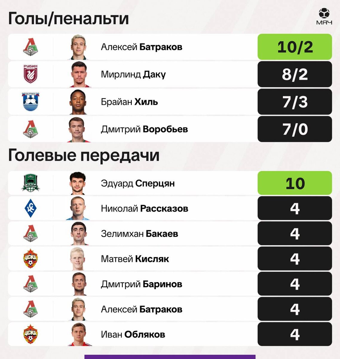 Даку не забивал 4 тура РПЛ подряд, но все еще второй в гонке бомбардиров РПЛ