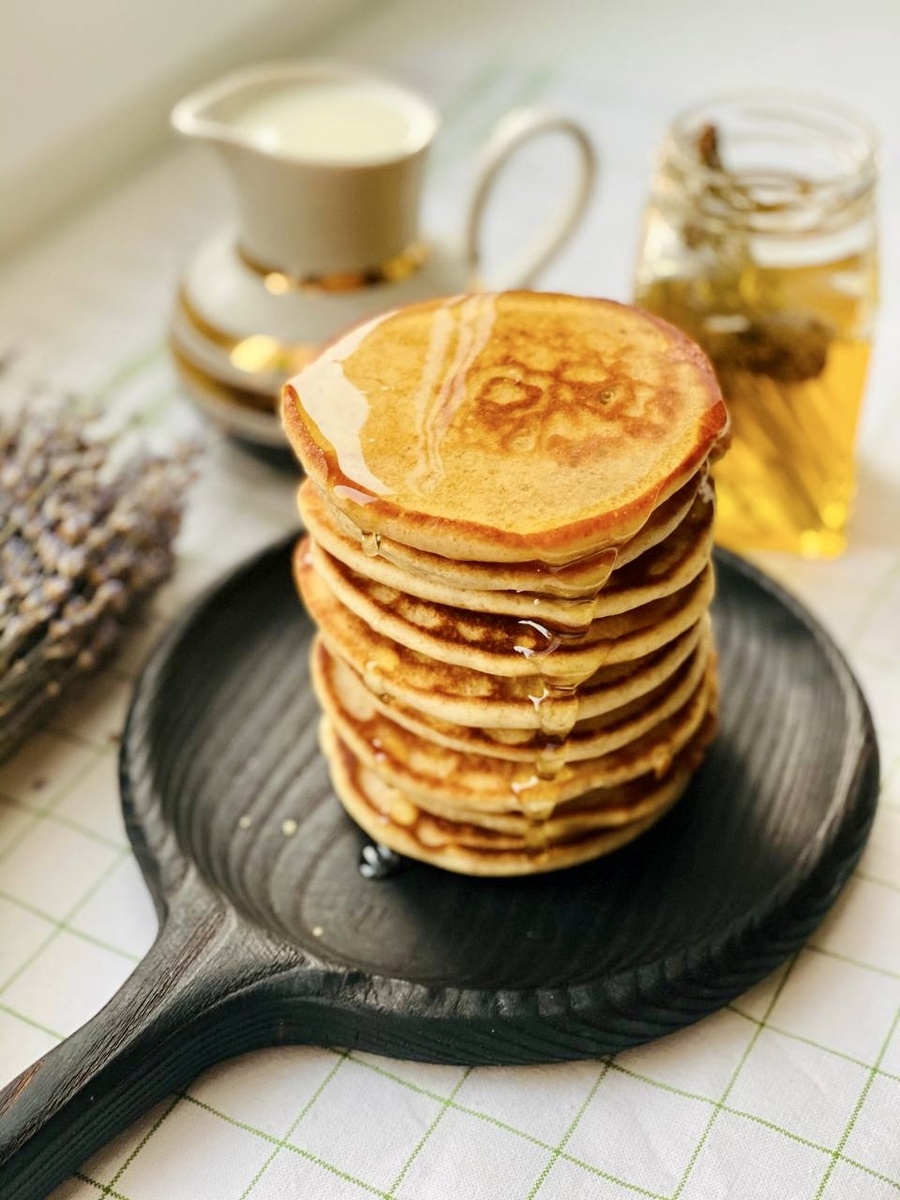 Ингредиенты: ▫️кефир 2,5% — 600 мл ▫️яйца куриные — 2 шт. ▫️сахар — 4 ст. л. ▫️пшеничная мука — 300 г ▫️овсяная мука — 200 г ▫️сода — 1 ч. л. ▫️соль — 1 щепотка Способ приготовления: 1. Кефир прогреть до комнатной температуры и добавить к нему все ингредиенты (муку просеять), вымесить тесто и оставить на 20 минут отдыхать (оно должно быть очень густым). 2. Выкладываем на сковородку по 1 ст. л. теста и жарим панкейки с обеих сторон. Приятного аппетита!