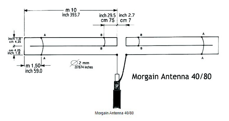Антенна Morgain для диапазонов 40/80 🔹 Данная антенна, первоначально разработанная для работы в диапазонах 40 и 80 метров, была модифицирована для эксплуатации в диапазонах 20 и 10 метров. Она демонстрирует высокие эксплуатационные характеристики в диапазоне 15 метров при общей длине конструкции в 20 метров. В качестве материала для изготовления антенны использован медный провод с поперечным сечением 2 мм, покрытый слоем винила. 🔹 На представленном изображении отражены параметры антенны Morgain. Эти размеры не являются аутентичными, однако они представляют собой оптимальные результаты, полученные в ходе нескольких серий испытаний данной антенны. Morgain является многодиапазонной антенной без использования трапов, что зачастую является важным фатором при выборе антенны. Читать далее >>