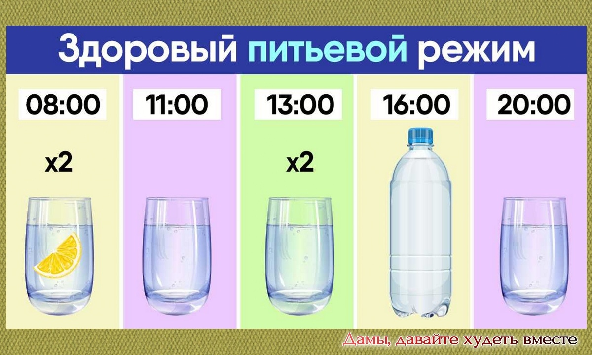 Но перед этим вновь картинка, уже знакомая по прошедшим Марафонам, о том КАК можно организовать питьевой режим в течение дня: