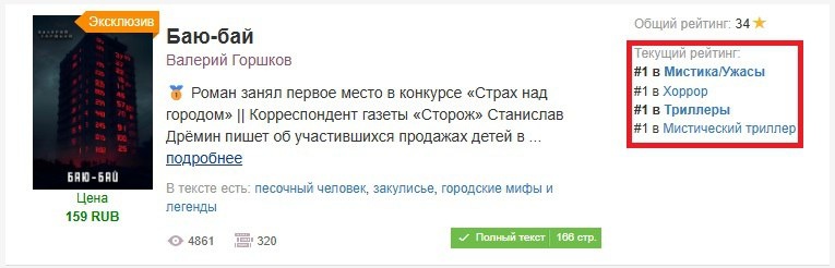 Роман «Баю-бай» — лидер рейтинга портала «Литнет