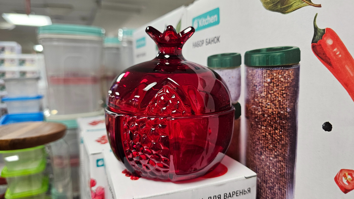 Столько привезли красоты в Фикс прайс, глаза разбегаются, хочется набрать в корзинку все сразу, но, давайте длч начала разберёмся, так ли всё качественно выполнено. Стеклянная розетка рубинового цвета для варенья; форма и размер граната переданы уж очень реалистично.👍 Можно использовать для варенья, сахара, соли; и как шкатулку для украшений, или монетницу, да для чего угодно. Ковш стеклянный, с деревянной ручкой; стекло закалённое, можно использовать на всех видах плит, но на огне и на индукции - с адаптером. Стекло не тонкое, есть носик для удобства. 700мл, за 270руб Из этой серии и сковорода, правда она из тонкого штампованного металла (аж звенит) с антипригарным покрытием; ручка пластиковая, задекорирована под деревянную. Понравилась из диковинного лёгкого дерева разделочная доска, толстая, отшлифованная. По 199р, были оттенки от светло-бежевого, до темно-коричневого. Мощные объемные салатники на деревянной круглой ноге. У меня к таким гигантам всегда два вопроса: как мыть