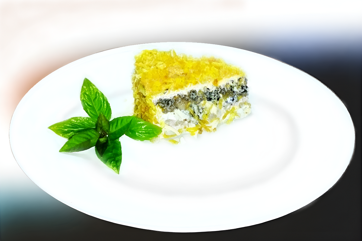 Каждый слой вносит свою гармонию, а майонезная заправка объединяет все вкусы в единое целое.