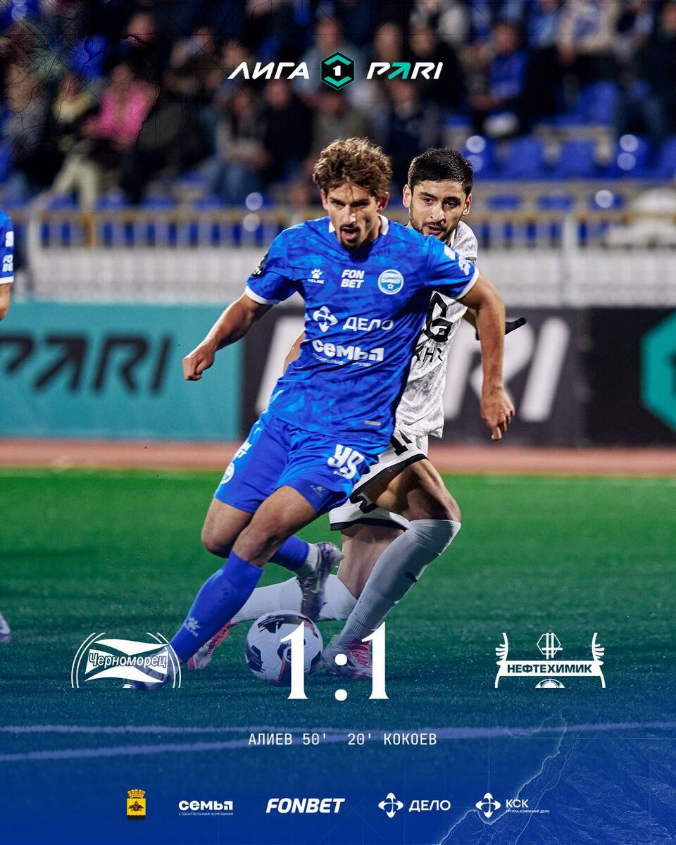 Новороссийский «Черноморец» сыграл вничью 1:1 с «Нефтехимиком» в домашнем матче матче Первой лиги. 🤩 Подписаться | БОТ ННН
