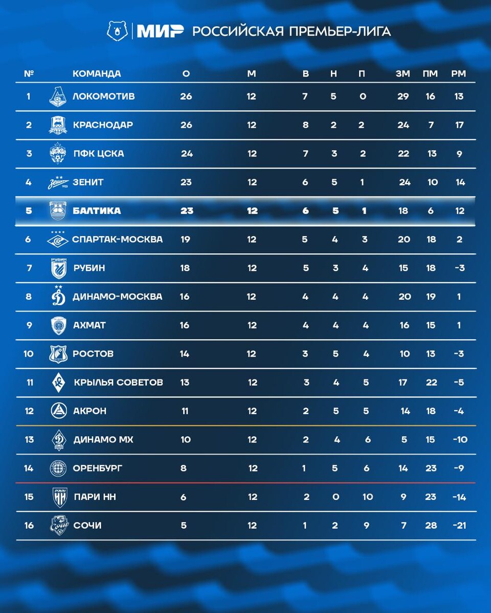 12 туров чемпионата позади — время оглянуться на таблицу. Следующий матч — с «Пари НН» 26 октября.