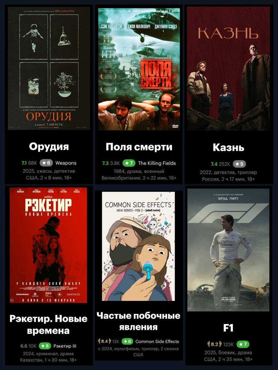 1. Орудия (2025) - очень много про него слышал, очень хотел посмотреть. Ожидание и предвкушение было интереснее чем фильм. Персонажи колоритные, играют прикольно, бабушка подобрана и играет шикарно, но всё на раз. 6/10 2. Поля смерти (1984) - когда жил во Вьетнаме очень много смотрел про Пол Пота, Красных Кхмер, поля смерти, весь алес происходящего описывает Дерево Чанкири. Долго хотел, долго откладывал, не разочарован (так-то у фильма 3 оскара, на реальных событиях). Моменты с фильтрацией в лагере, поле с костями, попытке спастись, остаться в городе в ожидании перемен к лучшему и всеобщим п.здецом, это да. Саундтрек местами не в тему, местами в точку. Смешанные чувства, надо вылетать в Комбоджу, смотреть на месте. 7/10 3. Казнь (2022) - не любитель я нового отечественного кино, но когда рекомендуют, я даю ему шанс. Тут рекомендовал Паша, а это редкость. Персонажи колоритные, очень, картинка сочная, грязная, гнетущая, какой-то советский нуар, тут плюсы закончились. Переигрывают, орут,
