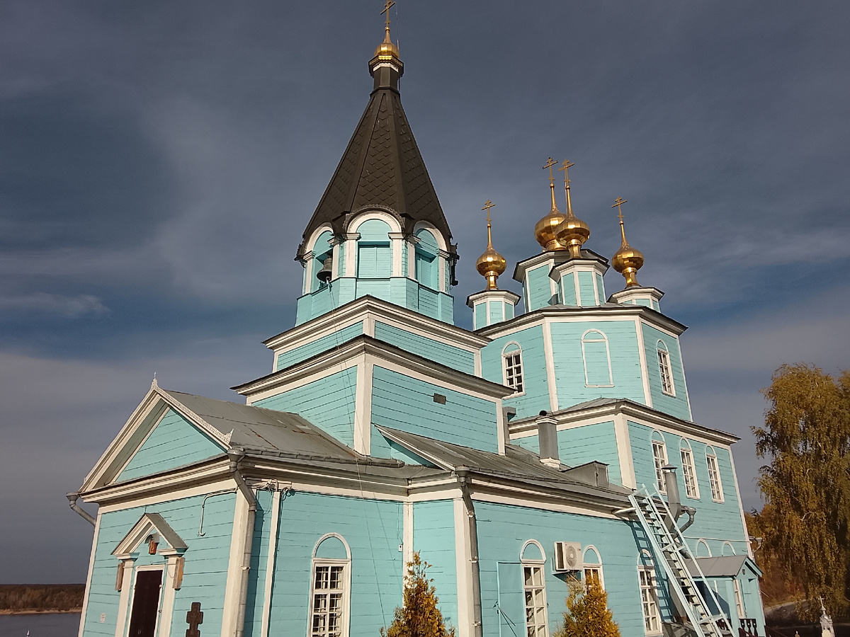 Этому храму на сегодняшний день 233 года. Мало ли таких на Нижегородчине, спросите вы? Да, потому что он деревянный. Деревянное зодчество штука хрупкая, особенно церкви, которые возвышаются над всей округой, нередко становясь мишенью для молний. А этот ещё и стоит в каком примечательном месте - на высоком берегу Волги, в пригороде Кстова, который теперь пригород Нижнего... Короче, в селе Великий Враг. И сохранился! Имеет статус памятника архитектуры федерального значения, это нехило. Я, когда впервые слышала "Великий Враг", всё думала, зачем какого-то врага чествовать? Потом выяснила, что тут просто буква "О" отвалилась, так что всё нормально. Итак, Казанская церковь. Пятиглавая, обшитая тёсом. Архитектурный тип - классический для русского деревянного храмового зодчества XVII-XVIII веков, называется "восьмерик на четверике" (то есть на стенах в четыре угла расположен восьмиугольник). С запада к церкви прилегает трапезная, над которой - шатровая колокольня. Конкретно эта церковь была