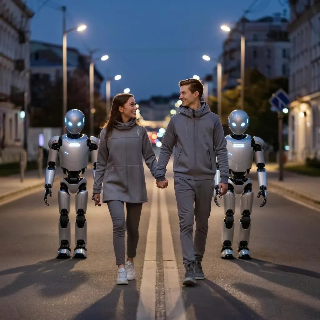 Искусственный интеллект должен оказать помощь Здесь начало повествования Прошла пара дней, Денис не звонил, хотя предупредил, что порешает все вопросы с ремонтом. Ксюша рисовала в блокноте схемы расстановки мебели. Ей все нравилось и не нравилось одновременно: то места много, то его совсем не хватало. Ближе к вечеру раздался долгожданный звонок. Старый друг снова позвал в то же кафе. Он проголодался, поэтому вкусняшки исчезали во рту Дениса с потрясающей скоростью. — Куда у него всё это помещается? — подумала Ксения. Сама она могла питаться травками и листиками. Не понимала, что мясо может быть вкусным. За столом сидели еще двое. Но в них было что-то необычное. Ксюша видела их сбоку и не могла понять, что в них не так. Друг поманил девушку к столу. Только сейчас она увидела, что сторонам стола сидят не люди, а андроиды — роботы, похожие на людей. Да, у них лица напоминали человеческие, но без эмоций. Рот только имитировал открывание, а глаза, скрытые за очками, смотрели не мигая. Им