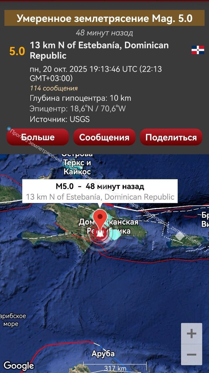 По Доминикане прилетело ощутимое М5, но возможно продолжение посильнее, т.к. энергия сброшена лишь частично.