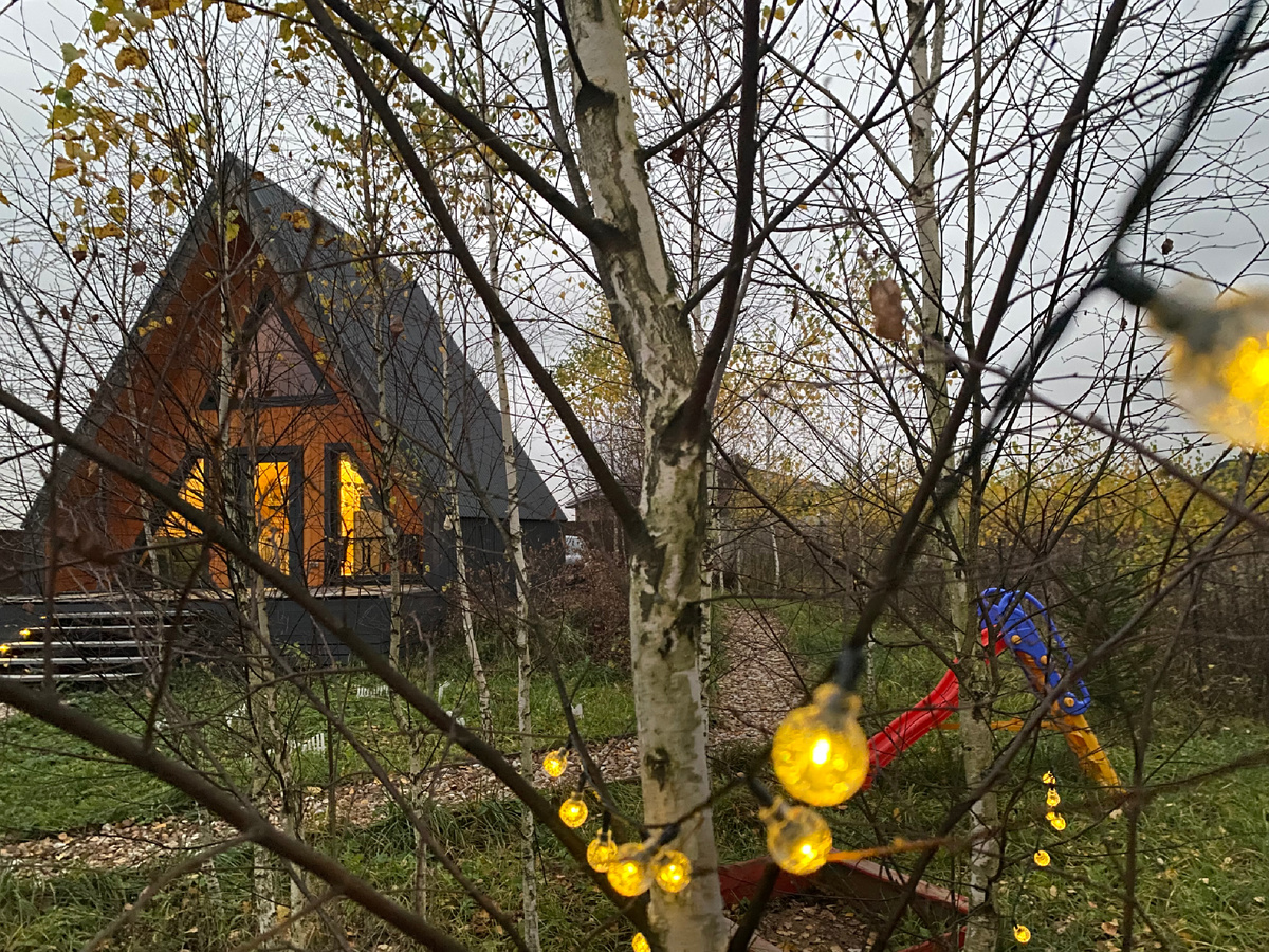 Есть такие моменты, когда время замирает, а душа наполняется абсолютным спокойствием. Именно такой момент запечатлен на этом фото из Helga_home_. Осень здесь – это не просто время года, это целое состояние души, которое я стараюсь передать в каждом уголке своего глэмпинга. Посмотрите: два моих уютных А-фрейма, словно сошедшие со страниц скандинавской сказки, утопают в золоте березовых листьев. Небо затянуто мягкой осенней дымкой, предвещающей скорый вечер, но это не делает пейзаж грустным – наоборот, добавляет ему глубины и загадочности. Особенно, когда зажигаются огоньки! Как тепло и маняще светится один из домиков, приглашая войти и укрыться от прохлады. А эти желтые гирлянды на деревьях, маленькие фонарики вдоль дорожки – они словно рассыпаны волшебной пылью, создавая неповторимую атмосферу уюта и праздника. Каменная дорожка, усыпанная опавшей листвой, ведет к двум деревянным креслам, словно приглашающим присесть. Рядом – зона для костра, где скоро затрещат поленья, и мангал, г
