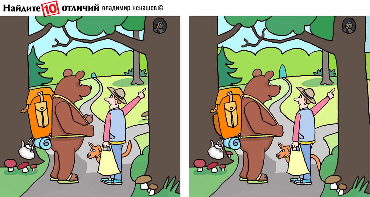 Всем привет! Новый тест и совсем не сложный. Погуляем на природе с нашими героями и поищем отличия в рисунках.