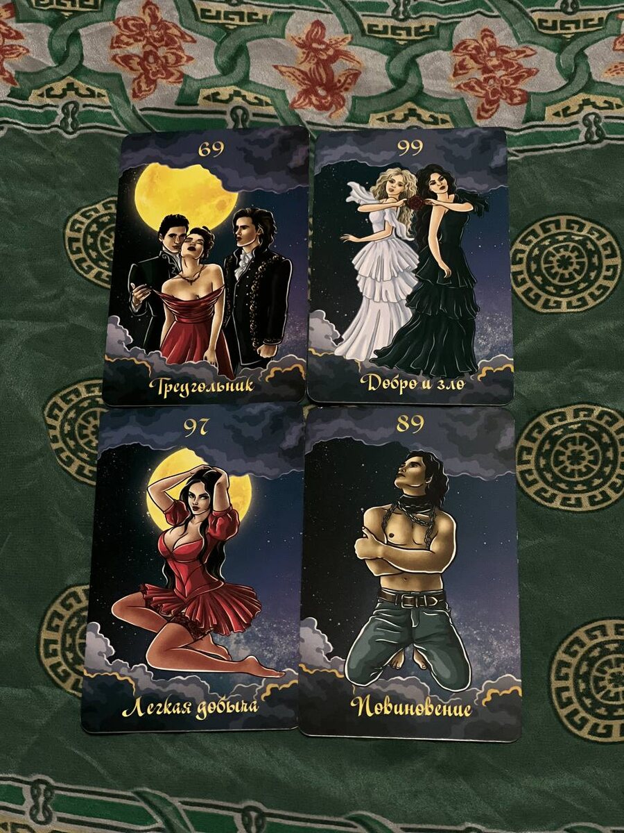 Максимально страстная и интересная неделя 😈😈😈 1: ТРЕУГОЛЬНИК На этой неделе вас ожидает глубокие любовные чувства страсть, на этой неделе невозможно встретить серьезную любовь но интересный и страстный роман точно может быть. Переход на ступень познания любви другого уровня. 2: ДОБРО И ЗЛО Раздвоенность выбор между личным и общественным между двумя ролями в плане отношений нет понимания хотя партнёра говорят на одном языке ищите компромисс. 3: ЛЕГКАЯ ДОБЫЧА Провокация, эпатаж, ощущение своей максимальной сексуальности. Исключительная демонстрация своей личности в какой-то степени даже доступности. Цинизм, спокойствием, деловой подход. 4: ПОВИНОВЕНИЕ Подавленность тяжелой зависимость от общения с кем-то либо разрушение духовного начала на этой неделе нужно искать баланс и не уходить в подавленность . Остановитесь, побудьте с собой наедине . Концентрируйтесь на себе и поблагодарите за опыт.