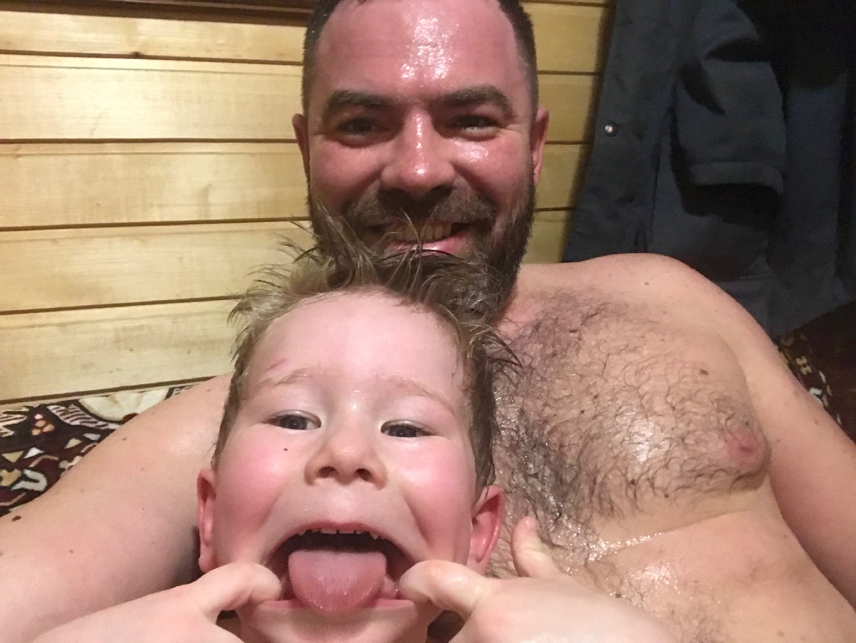 Просто напишу о бане. На фотографии я и мой сын Лёва. Мы когда вместе, постоянно с ним дурачимся. А ещё, когда ездим к маме, то постоянно ходим в баню. Кстати, давно мы с ним не парились вместе, поэтому скоро опять поедем:) Знаете, самое классное время, лично для меня, это ходить в баню во время дождя. Напарился, и сидишь слушаешь, как фигачит дождь по крыше. А ведь по молодости всегда ещё брали кучу пива с собой в баню, и не только пива. И иногда эта баня затягивалась до самого утра и самый прикол в том, что ты мог даже и не зайти в парилку, а просто просидеть с друзьями в предбаннике и протоандеть до самого утра, так и не попарившись. Обмывая всем кости и вспоминая забавные моменты из прошлой жизни. Даааа… А вейчас я поймал свой Дзен. И с алкоголем в бане окончательно завязано. Я полюбил в бане чай. Особенно с разными травами. И это неописуемый кайф. Можно с мёдом и даже с печенюхами какими-нибудь. Вот никогда, правда, не был в бане по-чёрному. Вернее был, но когда я был совс