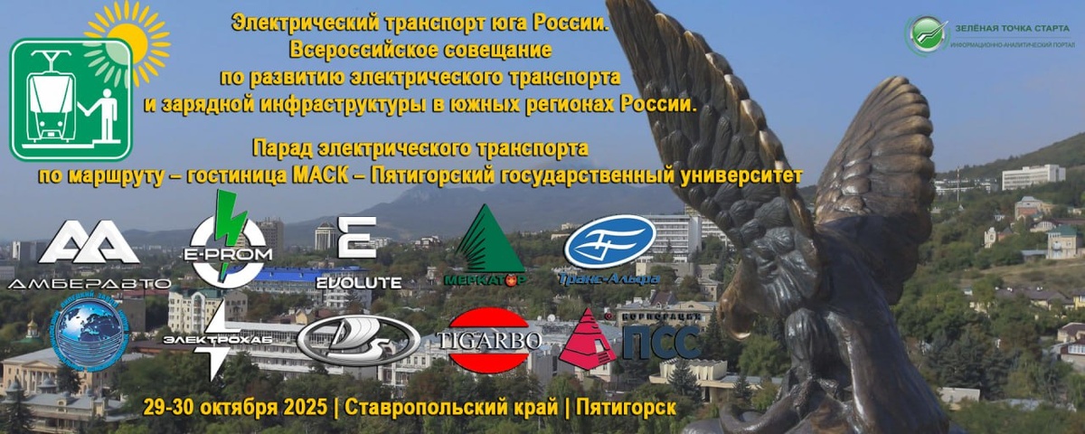 Пятигорск примет форум «Электротранспорт Юга России» и парад электромобилей! 29-30 октября в Пятигорске пройдет специализированный форум «Электротранспорт Юга России», в котором примут участие ведущие поставщики электромобилей различного назначения, зарядной инфраструктуры, подвижного состава и комплектующих для городского электротранспорта. Южный «Электротранс», который раз в два года традиционно собирает транспортное сообщество южных регионов, преследует амбициозную цель – способствовать переводу на электричество всего общественного, коммерческого, служебного, коммунального, туристического транспорта южных регионов. Отвечая на вопрос – что ускорило бы реализацию программ по переводу транспорта городов на электрический транспорт - председатель оргкомитета, член Президиума Научно-экспертного совета по мониторингу реализации законодательства в области энергетики, энергосбережения и повышения энергетической эффективности при Комитете по экономической политике Совета Федерации ФС РФ, ч