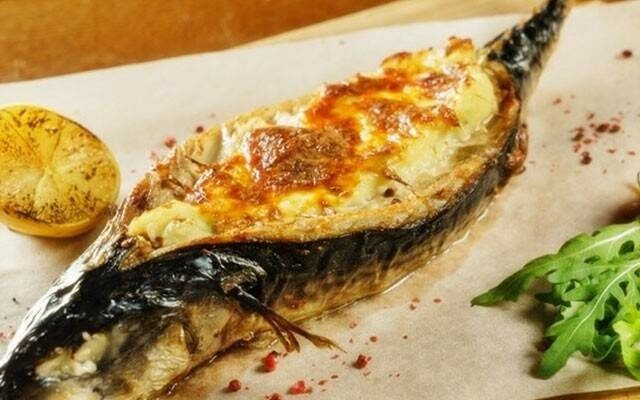 1. Скумбрию очистить от внутренностей и костей. 2. Посолить, поперчить. 3. Пассерованные лук и морковь положить внутрь скумбрии, получится форма лодочки. 4. Сверху залить майонезом. 5. Уложить в фольгу, затем на противень. 6. Поставить в духовку на 20 минут. 7. Вынять и сверху посыпать тёртым сыром. 8. Поставить противень в духовку ещё на 8-10 минут.
