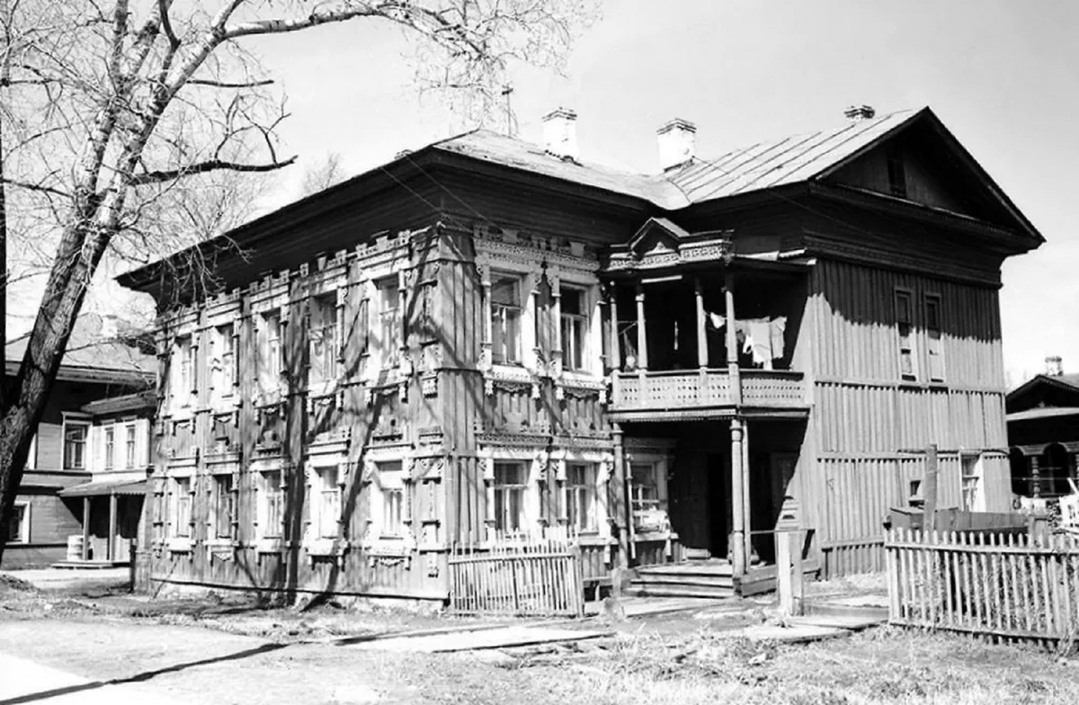Этот дом, как удалось определить краеведу Игорю Воронину, построил около 1906 года коллежский асессор Иван Фёдорович Тихановский. Когда дом в 1977 году включали в список памятников деревянного зодчества, то он имел более ранний год постройки и числился за мещанкой Анной Васильевной Рыниной (дом Рыниной). Сейчас дом называют обычно по последней владелице до революции - мещанке Марии Николаевне Вахрамеевой.