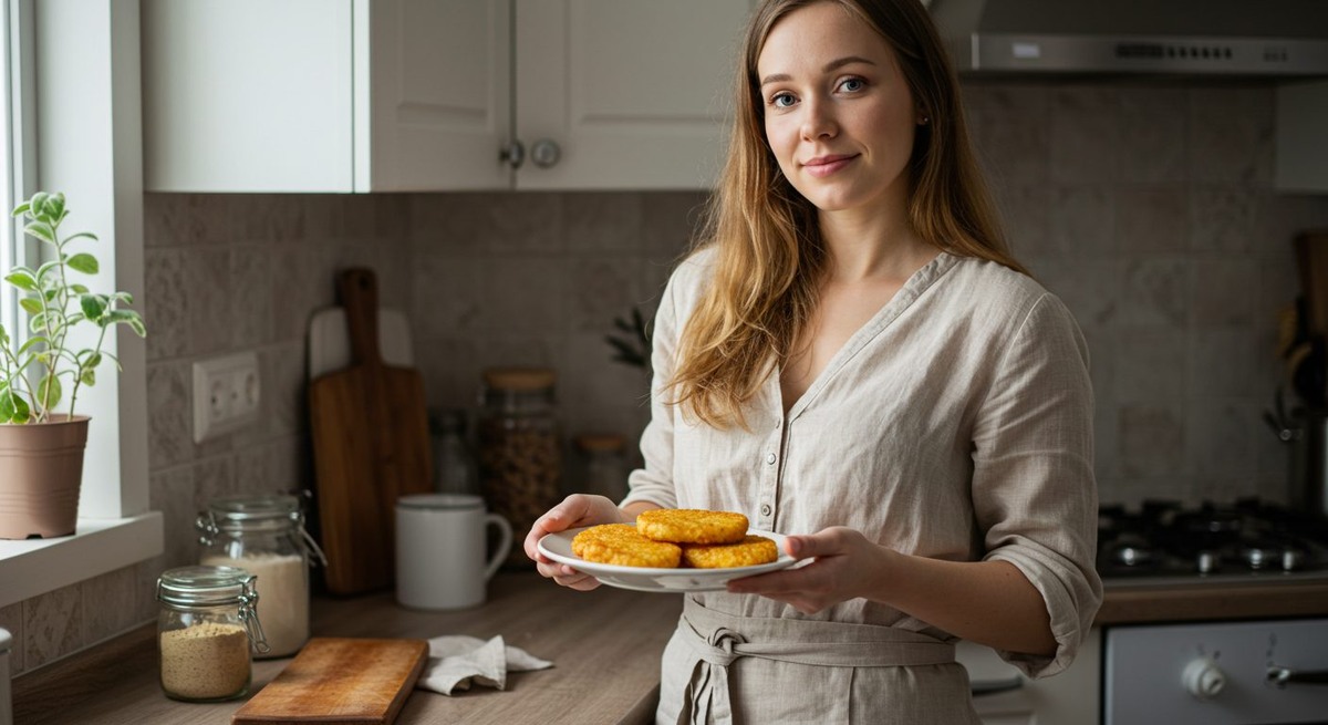 Хашбраун — это не просто очередной вариант картофельных лепёшек. Он стал настоящей находкой в домашних кухнях: быстро готовится, вкусен, а главное — легко адаптируется под разные потребности. Минимум ингредиентов, максимум пользы и вкуса. По сути, это румяная лепешка из тёртого картофеля, обжаренная до хрустящей корочки. Но в отличие от знакомых драников, хашбраун чаще готовят без яиц и муки, что делает его удобным выбором даже для малышей и аллергиков. В Америке хашбраун — символ сытного и простого завтрака. В нашей стране он получил новую жизнь. Мамы начали готовить его по своим правилам: из остатков пюре, без жарки, с добавками вроде кабачка или овсяной муки. Такой подход делает хашбраун одновременно вкусным и безопасным. Детям нравится за хруст и мягкость, а родителям — за простоту и быстрый результат. Готовится за 15–20 минут, съедается за пять. 1. Классический — тёртый картофель, чуть муки, яйцо, лук. Золотистая корочка и насыщенный вкус. 2. Веганский — без яиц и муки, можно запе