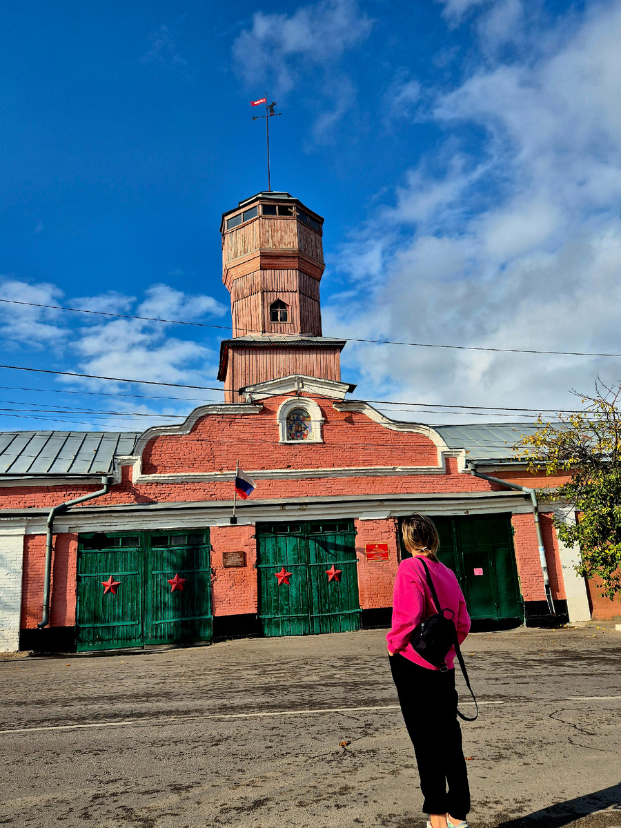 🔥 Не могла не заехать в очаровательный Павловск! Этот городок просто создан для неспешных прогулок, купеческие домики, узкие улочки, в которых чувствуется дух старины. И на самом высоком месте, в центре города, находится его узнаваемая доминанта - старинная пожарная каланча. 🧭 Это не просто памятник, а действующая пожарная часть, которая служит городу уже более 100 лет. Над одноэтажным зданием гордо возвышается трехъярусная деревянная башня со шпилем. Внутри до сих пор сохранились историческая деревянная лестница и верхняя смотровая площадка, с которой когда-то дозорные обозревали окрестности. А в 2022 году у каланчи появилась своя святыня - на здании установили и освятили икону Божией Матери «Неопалимая Купина», почитаемую как защитницу от пожаров. Образ размещен над входом и подсвечивается в темное время суток, что добавляет этому месту особого благоговения.