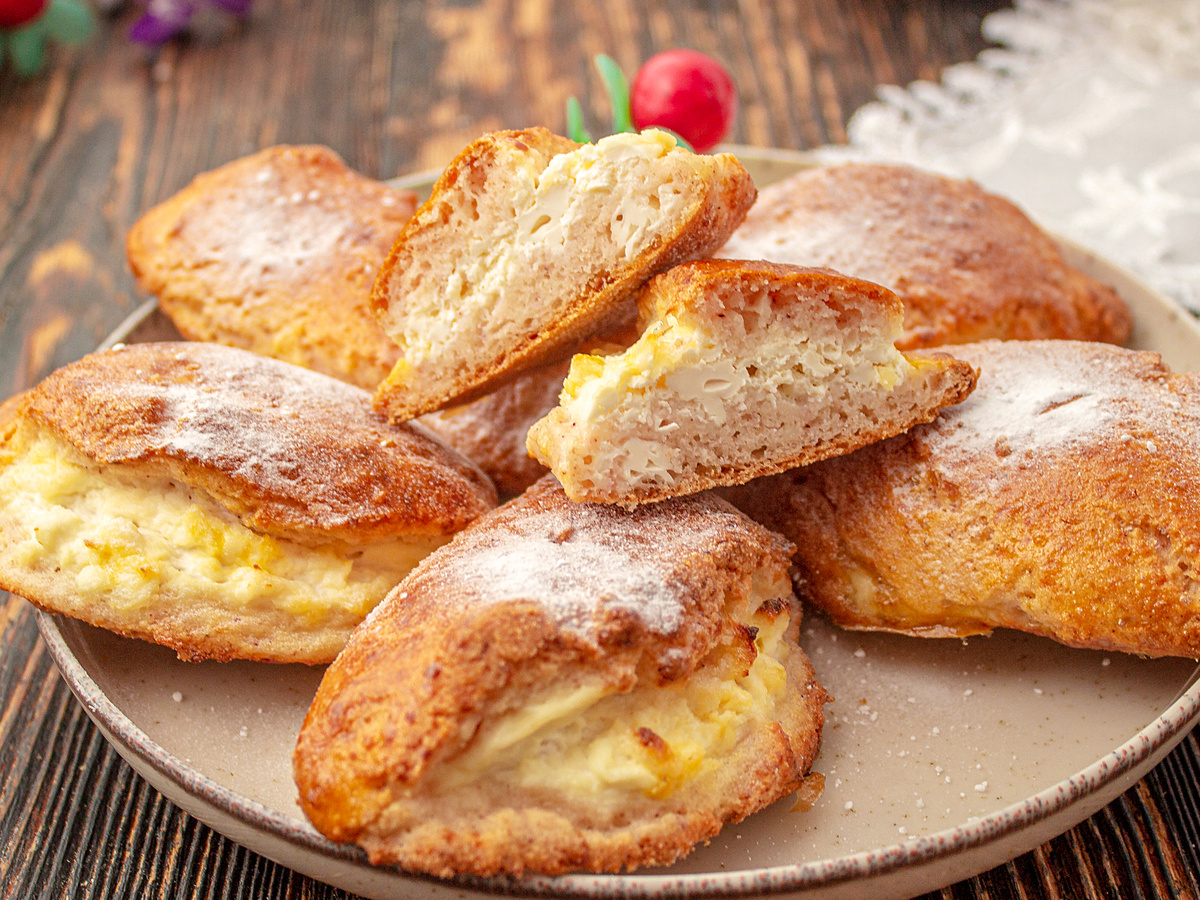 Они мягкие, не резиновые, с тонким ароматом ванили и приятной начинкой. Основу теста мы делаем на твороге и рисовой муке – у неё пониженная аллергенность, она легче усваивается и даёт нежную, не крошащуюся текстуру.
