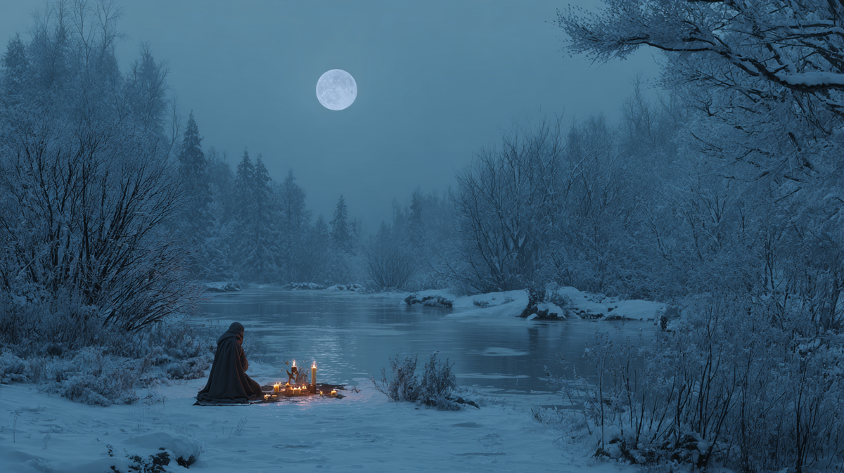 Холодная Луна приходит на исходе года, когда погода заметно стянулась морозцем. В одних местах уже лежит снег, и на ощупь — самая зима, хотя формально она начнётся с солнцестояния. (Иногда Полнолуние — до него, иногда — сразу после: это зависит от года.) Этот «порог холода» подчёркивает ценность ритма и меры: отдых становится практикой силы, а тишина — способом услышать, куда теперь жить. В языческих традициях это естественный «мост» к Йолю и обрядам возрождения — когда старое с благодарностью отпускают, а новое встречают с почтением к циклам природы.