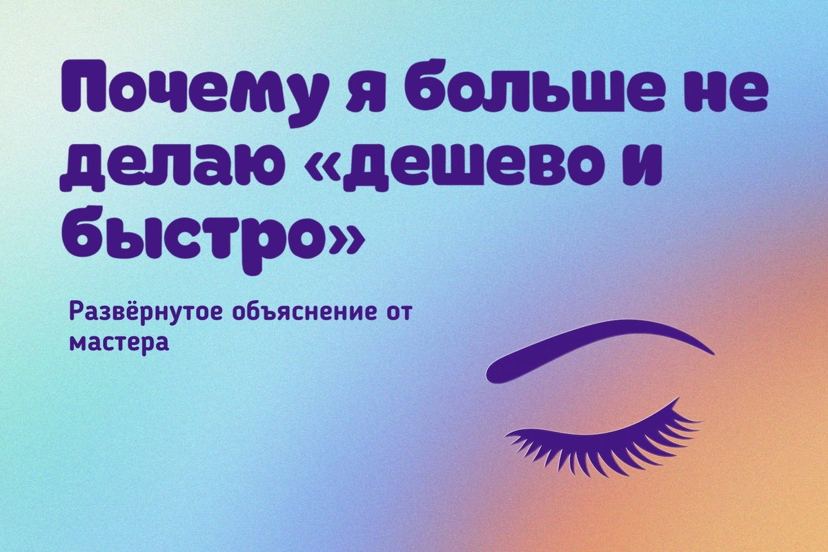 «Я не беру доплаты за мелочи и не экономлю на стерильности и материалах. За ваши глаза отвечает не только моё мастерство, но и материалы, условия, и время — поэтому цена отражает все эти факторы. Моя цель — чтобы вы не приходили ко мне через неделю с просьбой всё переделать.»