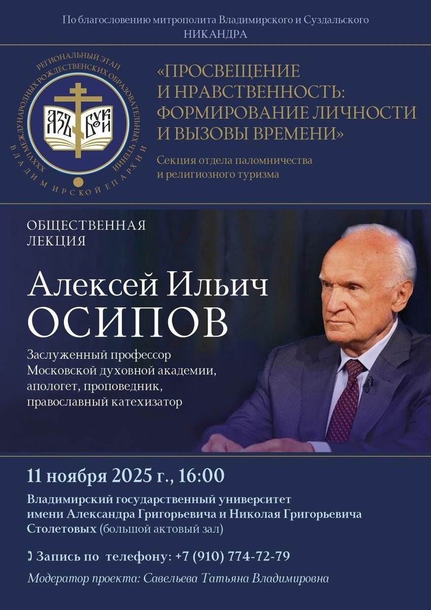 По благословению митрополита Владимирского и Суздальского Никандра, Отдел паломничества и религиозного туризма Владимирской епархии приглашает на лекцию на актуальную тему: