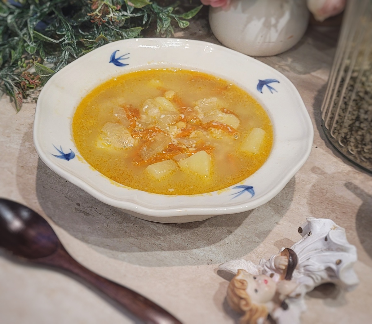Нежность белой фасоли, ореховая глубина тахини и свежая нота лимона. Растительный белок, нежная текстура и гармония в каждой ложке. Сытно, изысканно, полезно, что ещё нам надо?)) Ингредиенты указаны на кастрюлю 2,5 л ✔️Картофель 3 шт ✔️Морковь 1шт ✔️лук 1шт ✔️сельдерей 1-2 стебля по желанию ✔️фасоль белая 150-200гр ✔️специи по вкусу ✔️тахини (еунжутная паста) 1-2 ст.л по вкусу ✔️Соль по вкусу ✔️лимонный сок по вкусу ✔️масло для жарки опционально Фасоль на 12 часов замочить в воде, можно дольше. Затем воду слить, промыть, и отварить до готовности Очищенный Картофель режем произвольно и отправляем вариться в кастрюлю Лук нарезать кубиком, обжарить с добавлением небольшого количества масла. Добавить специи (у меня карри) затем добавить нарезанный мелко сельдерей иморковь. Морковь можнои нарезать кубиком или натереть на терке. Я решила воспользоваться тёткой по корейски В кастрюлю к картофель добавить Фасоль, зажарку и тахини. Перемешать Проварить 1-2 минуты и снять с о