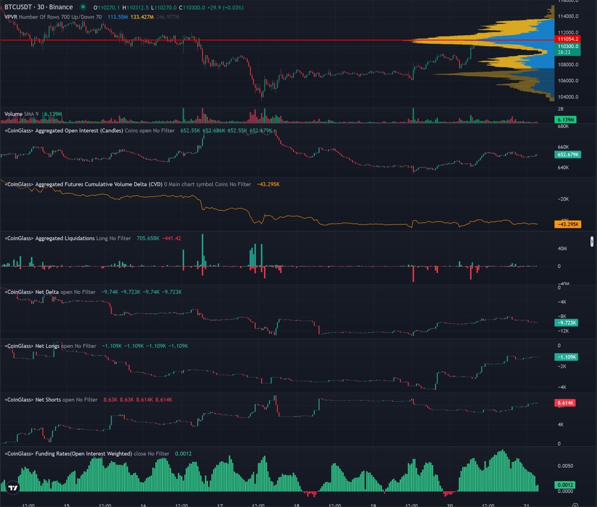 ΠΎΠ΄ΠΈΡ Ρ BTCUSDT (Binance) π 1οΈβ£ Open Interest β ΠΊΡΠΎΠ²Ρ ΡΡΡΡΠ΅ΡΡΠ½ΠΎΠ³ΠΎ ΡΡΠ½ΠΊΠ°. OI ΠΏΠΎΠΊΠ°Π·ΡΠ²Π°Π΅Ρ, ΠΈΠ΄ΡΡ Π»ΠΈ Π² ΡΡΠ½ΠΎΠΊ Π½ΠΎΠ²ΡΠ΅ Π΄Π΅Π½ΡΠ³ΠΈ. π’ ΠΡΠ»ΠΈ ΡΠ΅Π½Π° ΠΈ OI ΡΠ°ΡΡΡΡ Π²ΠΌΠ΅ΡΡΠ΅ β Π΄Π²ΠΈΠΆΠ΅Π½ΠΈΠ΅ ΠΏΠΎΠ΄Π΄Π΅ΡΠΆΠΈΠ²Π°Π΅ΡΡΡ Π»ΠΈΠΊΠ²ΠΈΠ΄Π½ΠΎΡΡΡΡ (Π±ΡΡΠΈΠΉ ΡΠΈΠ³Π½Π°Π»). π’ ΠΡΠ»ΠΈ OI ΡΠ°ΡΡΡΡ, Π° ΡΠ΅Π½Π° ΠΏΠ°Π΄Π°Π΅Ρ β Π·Π½Π°ΡΠΈΡ, Π΄ΠΎΠ±Π°Π²Π»ΡΡΡΡΡ ΡΠΎΡΡΡ. Π‘Π΅ΠΉΡΠ°Ρ ΠΌΡ Π²ΠΈΠ΄ΠΈΠΌ, ΠΊΠ°ΠΊ OI ΠΏΠΎ BTC ΡΠ°ΡΡΡΡ Ρ ~652K Π΄ΠΎ ~657K Π½Π° ΡΠΎΠ½Π΅ ΡΠΎΡΡΠ° ΡΠ΅Π½Ρ. ΠΡΠΎ Π³ΠΎΠ²ΠΎΡΠΈΡ, ΡΡΠΎ Π² ΡΡΠ½ΠΎΠΊ Π΄Π΅ΠΉΡΡΠ²ΠΈΡΠ΅Π»ΡΠ½ΠΎ Π²Ρ