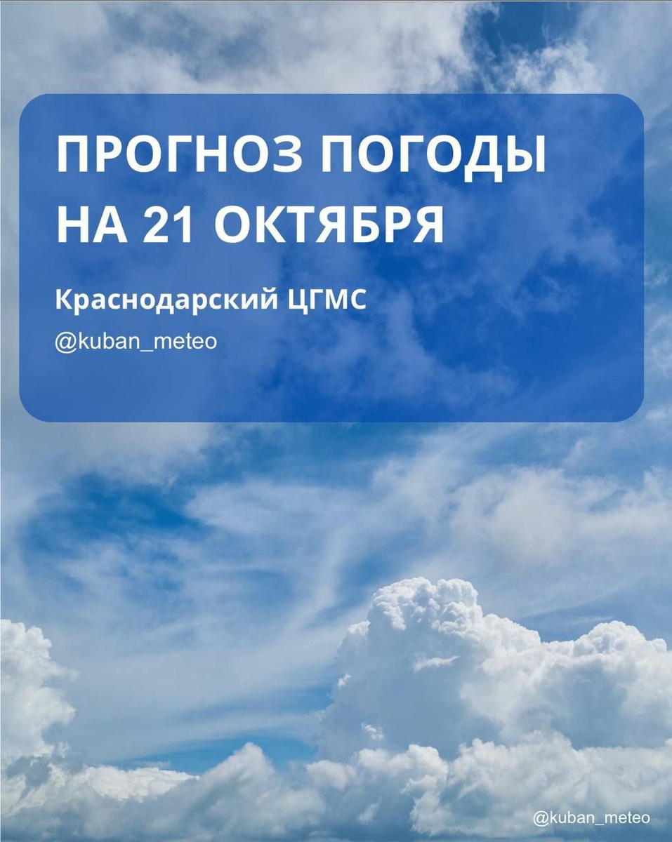 🌦️Прогноз погоды в Краснодарском крае на 21 октября.