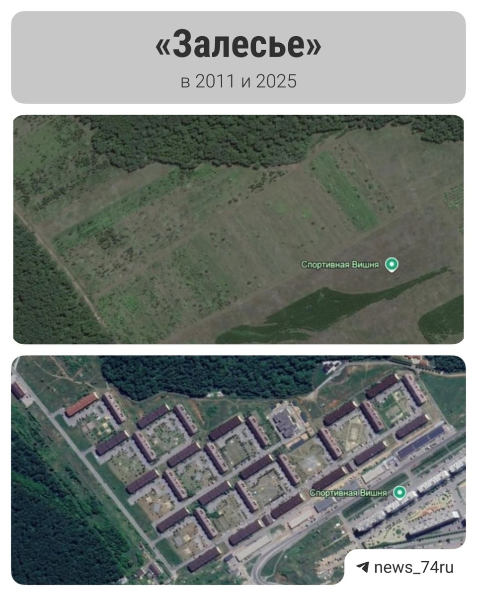 Как застраивался западный берег Шершней: сравниваем «до» и «после» со спутника Там, где лет 15 назад еще гуляли коровы, теперь — густонаселенный район размером с Коркино. Варианты тут есть и для фанатов уединенных коттеджей, и для тех, кто может позволить себе только скромную студию в многоэтажке. Мы посмотрели старые спутниковые карты: за 15 лет здесь разросся целый город ⬆️ Один из первых ЖК, появившихся в западном пригороде, — «Залесье». Еще в 2011-м на его месте были поля, а в 2012-м уже вовсю шло строительство жилых домов. На спутниковых снимках 2011 года вместо «Вишневой горки» были сплошь поля. В 2012-м там начались земляные работы: начали делать дорогу, опоясывающую микрорайон, потом появились и котлованы. А спустя еще четыре года разглядеть стало возможно и первые высотки. Полистать карты самому и увидеть масштабы застройки можно здесь →