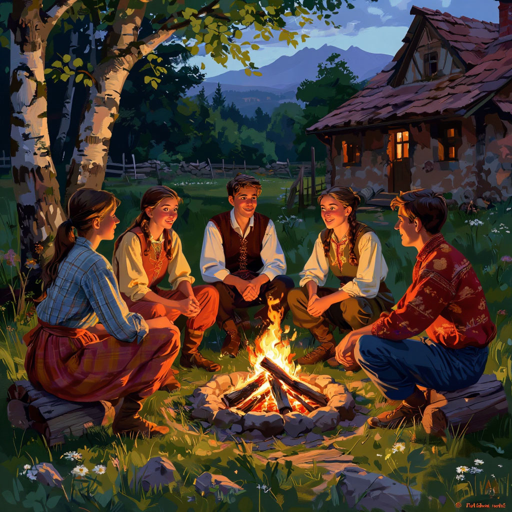 Девчонки кружились вокруг него, парни подшучивали, и даже обычно серьёзные взрослые мужики не могли сдержать улыбок, глядя на эту весёлую суматоху. Деревня жила своей особенной жизнью, где каждый знал друг друга, где радость одного становилась радостью всех.