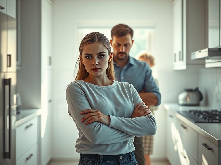 На кухне повисла тишина, как перед грозой. Дмитрий стоял с опущенными глазами, а рядом мать его — Ольга Сергеевна — губы поджала, будто лимон откусила. Только чайник на плите шумел, да стрелка на микроволновке мигала.