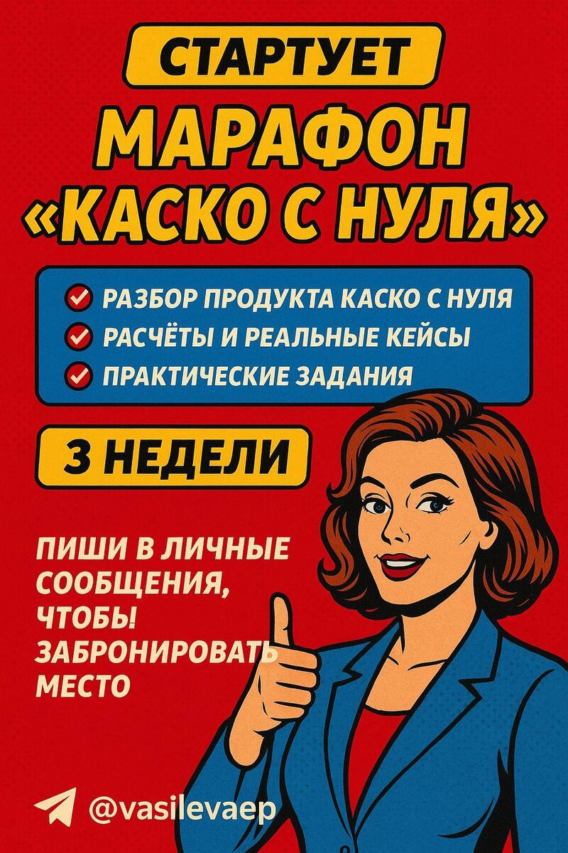 🚗 Стартует Марафон “КАСКО с нуля” Если ты — страховой агент и хочешь разобраться в КАСКО, научиться считать, предлагать и продавать его уверенно 💪 — этот марафон для тебя! Начало 3 ноября. 📅 3 недели 🕓 Понедельник, среда, пятница 🎥 Формат — Zoom + записи на GetCourse 👩🏼💼 Ведущая — Екатерина Васильева 🎙 Эксперты — представители АльфаСтрахование, Ингосстрах, РЕСО 💰 Стоимость участия — 5000 руб Что тебя ждёт: ✅ разбор продукта КАСКО с нуля ✅ расчёты и реальные кейсы ✅ практические задания ✅ личные разборы ✅ встречи с экспертами страховых компаний 🔥 За 3 недели ты научишься работать с КАСКО профессионально — от первого разговора до продажи! Переходи по ссылке, чтобы забронировать 1 из 15 мест👇 📲 https://onetouchagent.getcourse.ru/pl/cms/page/editor?id=4244921 #страхованиеводнокасание #КАСКО #марафонКАСКО #страховойброкер #обучениеагентов #ВасильеваЕкатерина