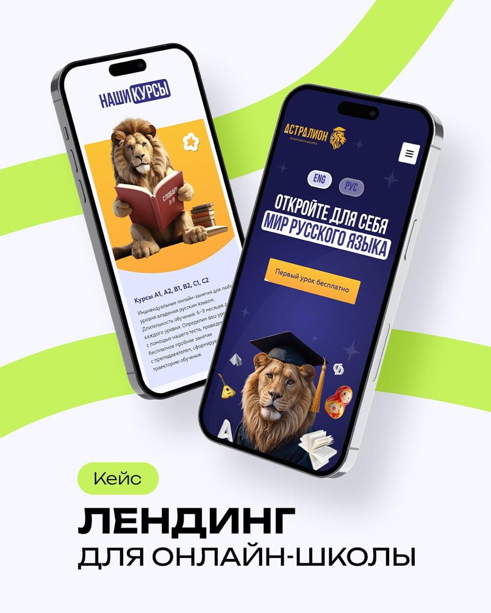Как сделать сайт и сразу продавать Кейс: лендинг онлайн-школы русского языка astralion.ru 🦁 Астралион вышли в диджитал с нуля и сразу с лендингом, который конверит: ➡️ броский дизайн, который выделяет школу среди конкурентов ➡️ структура без лишнего — от оффера к кнопке всего один шаг ➡️ сильный триггер: «Первый урок бесплатно» снижает барьер и вовлекает #кейс #лендинг