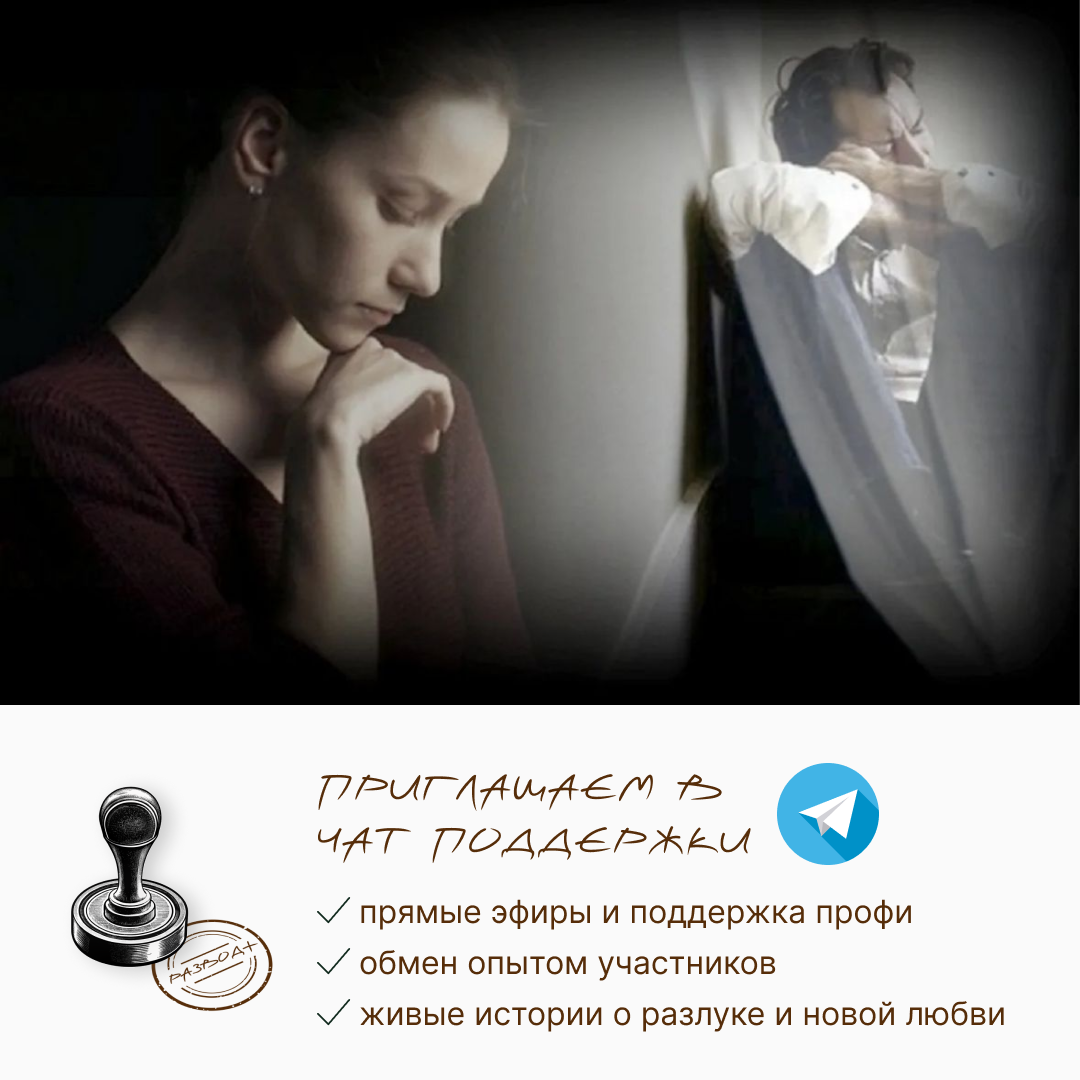 ЕСЛИ ВАШИ ОТНОШЕНИЯ: Чат поддержки в Telegram: t.me/razvod_plus ПРИГЛАШАЕМ ВАС в ТГ-чат поддержки, где вы сможете: Чат поддержки в Telegram: t.me/razvod_plus ЛЮБЫЕ ОТНОШЕНИЯ – ПОТЕНЦИАЛЬНЫЙ ИСТОЧНИК БОЛИ. Мы не можем идеально совпадать по всем направлениям, не только потому, что мужчина и женщина по-разному воспринимают мир. К моменту встречи каждый из нас имеет личную историю, принципы, ценности, не говоря уже о сформировавшемся характере, сексуальном темпераменте, предпочтениях в еде, представлении о порядке, ответственности и т.д., и т.п. Поэтому конфликты, кризисы будут возникать, многие из которых вполне разрешимы. Но есть периоды в жизни пары, когда особенно больно, а иногда невыносимо. Когда кажется, что все рушится, или уже разбилось на осколки, из которых уже не собрать былого счастья. Развод. Затянувшийся конфликт. Измена. Отдаление друг от друга. Равнодушие. Ощущение, что вместе уже невозможно так жить. Сильный страх потерять родного человека, которому стал чужим. Или, наобо