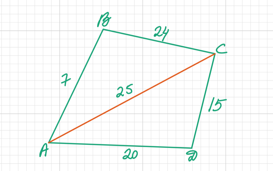 AB = 7, BC = 24, CD = 15, AD = 20 и AC = 25.