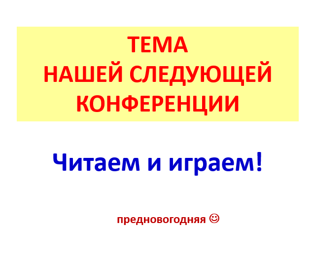 Дорогие друзья и коллеги, мы рады официально объявить тему нашей предновогодней конференции: "Читаем играем" ✨ Дата проведения мероприятия: декабрь 2025 г. Встречаем третий сезон! В прошлом сезоне этой конференции мы говорили о литературных играх, квестах и настолках. Какой станет конференция в 2025 году? Зависит от вас 🤗 Напомню, что все наши конференции строятся на основе ваших пожеланий и запросов! Пожалуйста, напишите в форме предварительной регистрации: ✅ на какие темы вы хотели вы поговорить в первую очередь ✅ какие вопросы кажутся вам самыми интересными и требующими обсуждения с коллегами ✅ кого из спикеров нам пригласить и т.д. Заполнить форму На основе ваших пожеланий мы сформируем основные темы и вопросы конференции, и после этого откроем прием заявок для спикеров :)