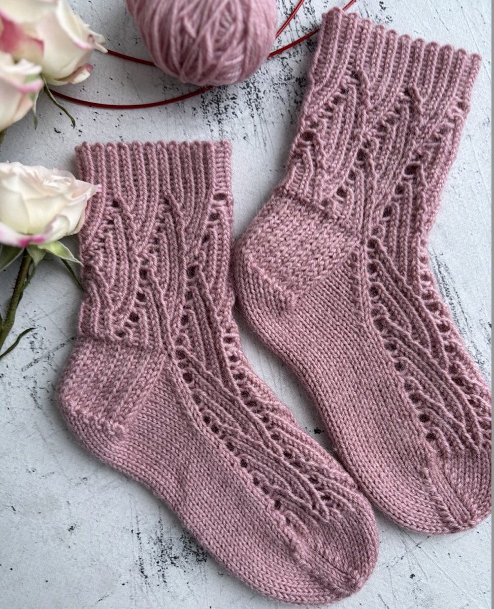 Пару недель назад я начала вязать Соне (одной из моих старших дочерей) новый бактус. Долго не могла выбрать узор, но когда выбрала - сразу захотелось связать с ним носки)) ну смотрите какой красивый :) но про бактус позже расскажу, как довяжу У меня был остаток пряжи alize artisan в нежном цвете пыльная роза, должно было хватить Саре на пару. Сразу скажу, что на 23-24 девчачий детский размер ушло 30 грамм (ей сейчас полтора года). Спицы для работы с тонкой пряжей у меня одни - 2,25 мм на леске 100 см. Это спицы red lace от chiaogoo. Если вы часто вяжете носки - побалуйте себя ими. Я вяжу на них весь свой декрет (уже страшно писать, но больше восьми лет) и с ними ничего не произошло. Удобные, прочные с очень гибкой леской. 1. На резинку я набрала 48 петель + 1 петлю для замыкания вязания в круг. Резинка с узором 1х1, где все лицевые петли перекрещенные. Высота резинки 10 рядов. Я и так резинку вяжу с перекрещенными лицевыми, ну а тут сам узор этого просил. Смотрите как красиво пото