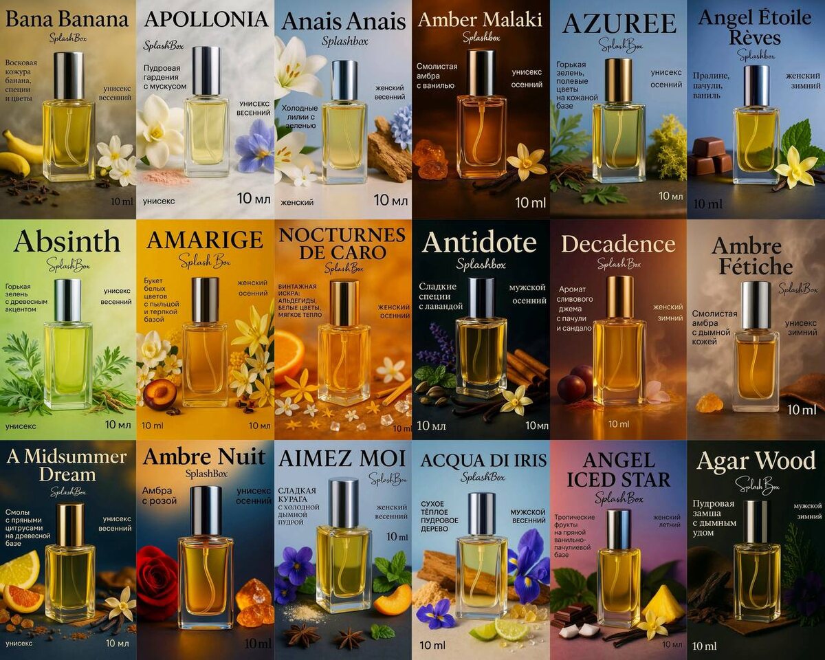🤩🤩🤩🤩🤩🤩🤩🤩 🤩🤩🤩🤩🤩🤩🤩 🤩🤩🤩🤩🤩🤩🤩🤩 Всем привет! ☀️ Списком недавние новинки Вам ❤️ На OZON добавим чуть позже 🦋 🤩Angel Iced Star - тропические фрукты на пряной ванильно-пачулиевой базе 😁Арт. 568696872 🤩Bana Banana - восковая кожура банана, специи и цветы 😁Арт. 568696839 🤩Absinth - горькая зелень с древесным акцентом 😁Арт. 568696836 🤩Midsummer Dream - смолы с пряными цитрусами на древесной базе 😁Арт. 568696844 🤩Apollonia - пудровая гардения с мускусом 😁Арт. 563537687 🤩Amber Malaki - смолистая амбра с ванилью 😁Арт. 563537725 🤩Amarige - букет белых цветов с пыльцой и терпкой базой 😁Арт. 564575390 🤩Antidote - сладкие специи с лавандой 😁Арт. 563537755 🤩Arabian Nights - роза с удовой базой и шафраном 😁Арт. 563537753 🤩Acqua di Iris - сухое теплое пудровое дерево 😁Арт. 563537703 🤩Azuree - горькая зелень, полевые цветы на кожаной базе 😁Арт. 563537701 🤩Angel Etoile Des Reves - пралине, пачули, ваниль 😁Арт. 563537696 🤩Agar Wood - пудровая