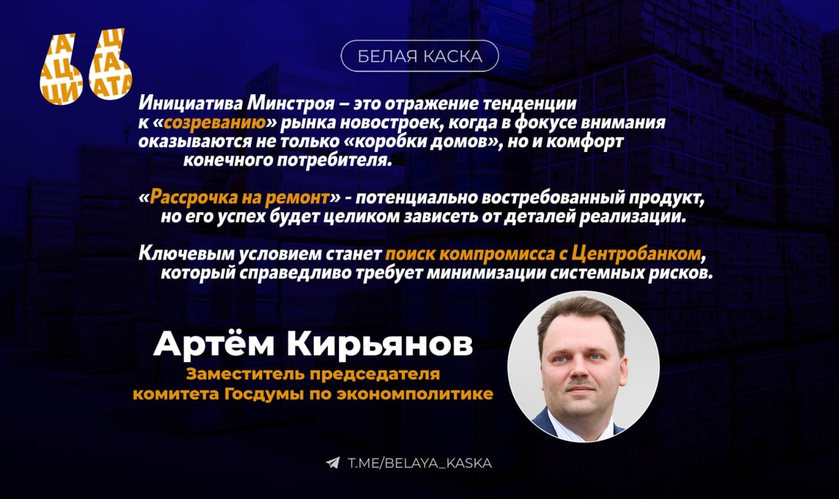 ⭐️ Зампред думского комитета по экономической политике Артем Кирьянов – о рассрочке на период проведения ремонта в новостройках:
