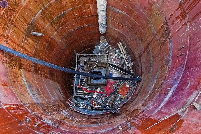 Это раскопанный оголовок 40-метрового ствола, собранного из бетонных тюбингов и обшитого внутри металлоизоляцией.