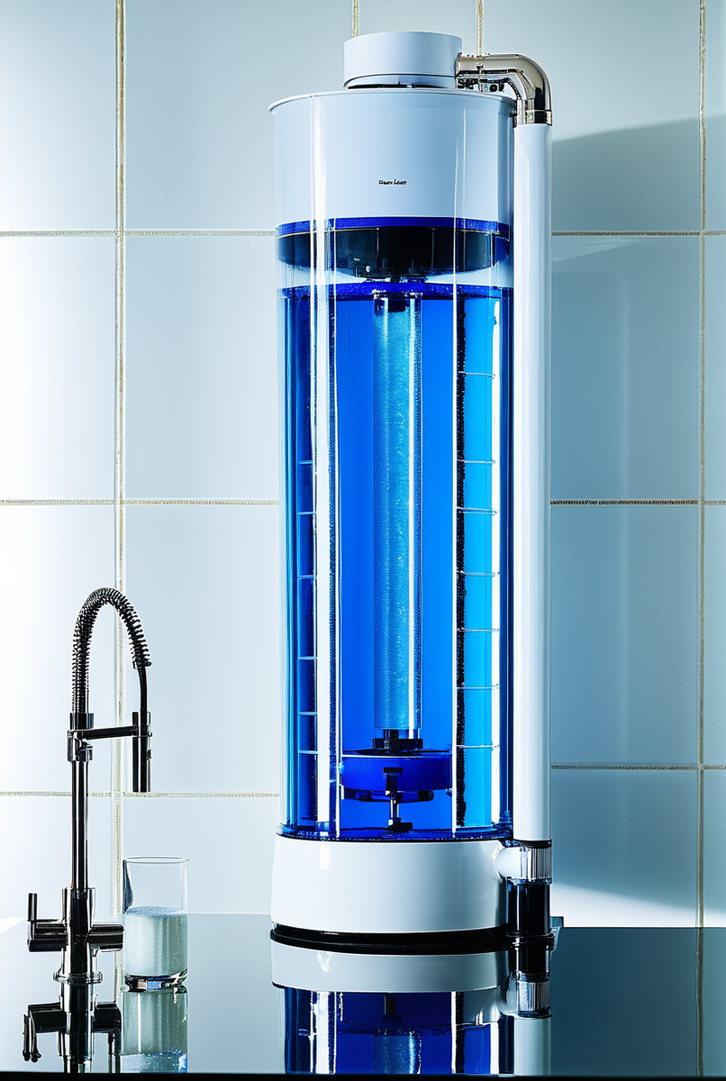 Монтаж системы водоподготовки осуществляется специалистами. В зависимости от свободного места и требований к производительности выбирают либо фильтр колонного типа (отдельная колонна и солевой бак), либо компактный кабинетный фильтр («все в одном»). Оба варианта требуют подключения к водопроводу, канализации для сброса промывных вод и к электросети для работы управляющего клапана.