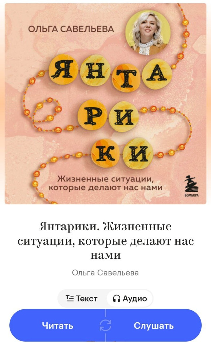 Ольга Савельева - мой любимый автопокупаемый автор❤ На этот раз даже покупать не пришлось - в день открытия продаж её "Янтарики" появились на Яндекс Книгах и я тут же их частично прочитала, частично прослушала. Всегда считала, что не воспринимаю аудио формат, но в Яндекс Книгах так удобно переключаться: читаешь, потом слушаешь, потом снова продолжаешь чтение. Электронный текст и аудио версия синхронизированы. Из всех книг Ольги Савельевой, наверное, это не самая сильная. Что-то я читала у неё в блоге, что-то слышала на её выступлении. Но всё равно я получила удовольствие и жду её новых книг, а осенью обязательно пойду на её стендап. Кстати, в электронной и аудио версии в отличии от бумажной книги есть бонус - несколько рассказов "янтариков" от других авторов. Знакомы с творчеством этого автора?