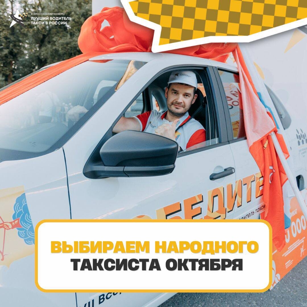 ⚡️ Выбираем Народного таксиста октября Каждый месяц мы разыгрываем подарочные сертификаты в маркетплейс (OZON и WB), а также почётное звание «Народный таксист» по версии подписчиков. Как принять участие: 1️⃣ Подписаться на наше сообщество ВК, 2️⃣ Написать в комментариях имя и фамилию водителя, которого поддерживаешь, 3️⃣ Поставить лайк и сделать репост поста с розыгрышем. По итогам всех прямых эфиров мы определим 11 народных таксистов, которые автоматически становятся участниками розыгрыша «Везучий случай» и получают шанс попасть в финал. Ближайший розыгрыш пройдёт 27 октября в 10:00 по мск. Помните, чем больше комментариев, тем выше шансы на победу 🍀 🖥 Переходите по ссылке и голосуйте за «Народного таксиста»
