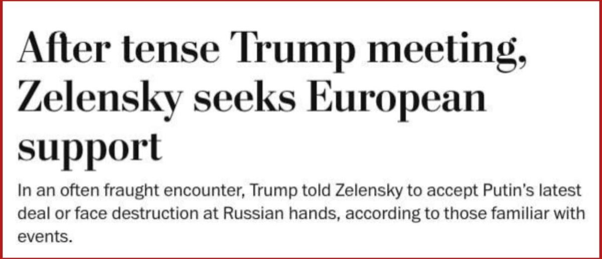 Трамп на встрече с Зеленским жаловался, что не получил Нобелевскую премию мира — The Washington Post Издание пишет, что европейский дипломат, проинформированный о ходе переговоров, назвал встречу «беспорядком» и сказал, что Трамп также «непрерывно жаловался на то, что не получил Нобелевскую премию мира». Другой чиновник отметил, что остается непонятным, что именно повлияло на Трампа после того, как он несколько недель выражал разочарование Путиным. Подпишись на Телеграм Александр Семченко