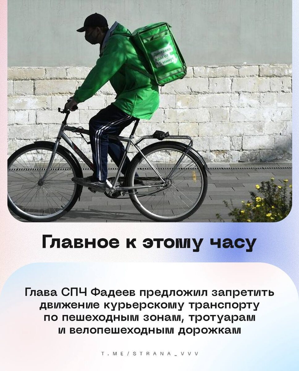 🇷🇺🇷🇺🇷🇺🇷🇺🇷🇺🇷🇺 на утро 21 октября: 🔹Глава СПЧ Фадеев предложил запретить курьерскому транспорту движение по пешеходным зонам, тротуарам и велопешеходным дорожкам. 🔹Российские силы ПВО за ночь сбили 55 украинских беспилотников, сообщило Минобороны. 🔹Сбербанк повысил ставки по вкладам на 0,5—2,1 п. п., сообщили в пресс-службе кредитной организации. 🔹Аферисты для обмана россиян используют чат-бот Telegram, замаскированный под портал «Госуслуги» — СМИ. 🔹В Общественной палате предложили ввести идентификацию по паспорту для доступа к контенту 18+ в интернете. 🔹Депутат Госдумы Нилов просит Минздрав пресечь навязывание услуг пациентам в платных медцентрах. 💰Курсы валют: доллар — 📈 81,36; евро — 📉94,38; юань — 📈11,35. 🇷🇺 В Стране. Подписаться